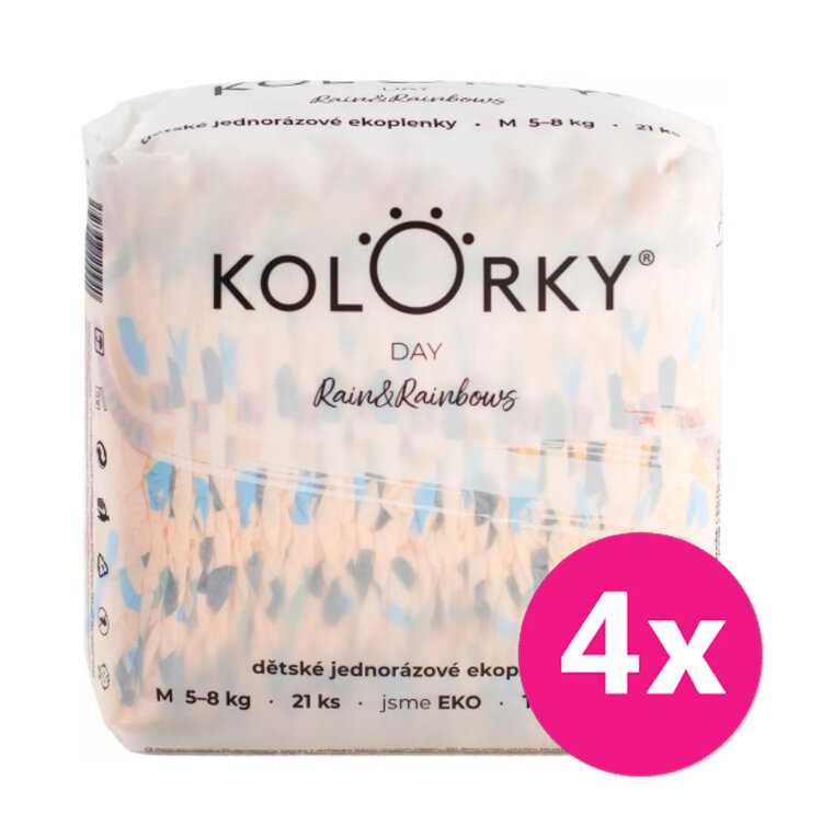4x KOLORKY DAY Pleny jednorázové eko, déšť&duhy M (5-8 kg) 21 ks značky Kolorky - toto zboží si můžete zakoupit za úžasnou cenu 686. Nákup přes nás znamená jistotu dobré ceny. Vyberte si zboží v celkové hodnotě nad Kč a poštovné máte ZDARMA. Už se těšíte na svoji objednávku?