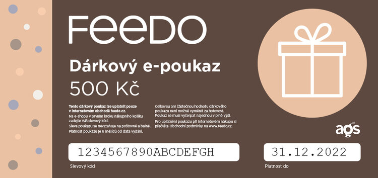 Jedinečná nabídka Dárkový poukaz 500 Kč pro eshop od producenta Feedo za příznivou cenu Kč. Zobrazit více »
