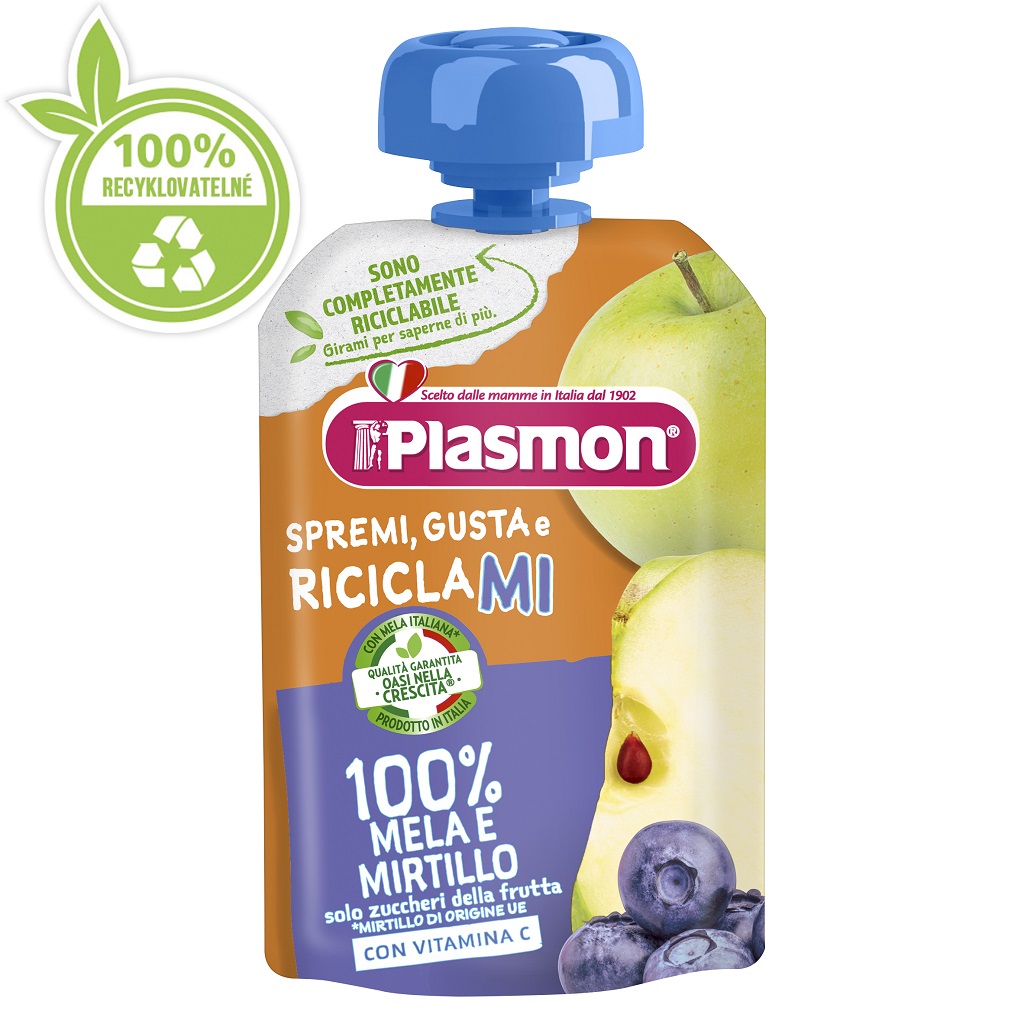 Produkty značky Plasmon jsou vyrobené v Itálii podle jedinečných receptur s ověřitelným původem každé suroviny dle standardu Oasi nella Crescita®. Všichni pěstitelé a dodavatelé mají předepsaná přísná pravidla šlechtění a pěstování, která jsou pravidelně kontrolována. V našich produktech tak naleznete jen ty nejkvalitnější suroviny. Dbáme na to, aby výživa vašeho miminka byla především zdravá a vyvážená, ale také dostatečně pestrá. Proto u nášich produktů naleznete mnoho variant a příchutí, které vašemu malému labužníkovi představí celou řadu nových chutí a textur. Vše navíc bez přidaných konzervantů a umělých barviv. Značka Plasmon má za sebou více jak 120 let zkušeností s kojeneckou výživou a zakládá si především na prvotřídní kvalitě a skvělé chuti, aby dokonale uspokojila všechny nutriční potřeby vašich malých jedlíků. Díky tomu je na poli kojenecké výživy již dlouhá leta značkou číslo jedna v Itálii. Ovocná kapsička Plasmon jablko a borůvka je díky praktickému obalu, vynikající ovocné chuti a hlavně 100% přírodnímu složení ideální svačinkou doma i na cestách. V našich produktech naleznete vždy jen ty nejlepší ingredience s dohledatelným původem a velmi přísmou a pečlivou kontrolou kvality, a proto i kapsička Plasmon jablko obsahuje pouze pečlivě vybrané, ručně sbírané a ideálně zralé ovoce, které je pěstováno a sklízeno podle přísných a pečlivě kontrolovaných standardů k zaručení té nejvyšší kvality. Vybíráme navíc jen ty odrůdy, které jsou nejvhodnější pro nutriční potřeby vašeho miminka. Příprava probíhá dle 100% přírodního receptu, proto v našich kapsičkách nenajdete žádné konzervanty ani barviva. Obsahují pouze přírodní ovocné cukry a jsou zdrojem vitaminu C. Kapsičky Plasmon jsou dostupné v mnoha variantách, a proto jsou pro vaše miminko ideálním společníkem při objevování nových ovocných chutí. Vhodné od ukončeného 6. měsíce věku, pokud pediatr nedoporučí jinak. Složení: Ovoce (99,9 %) (jablko 87,9 %, borůvka 12 %), vitamin C, koncentrovaná citronová šťáva. BEZ LEPKU. Výrobek by měl být skladován na suchém místě mimo dosah zdrojů tepla. 100% přírodní složení bez přidaného cukru – obsahuje pouze přírodní ovocné cukry bez přidaných barviv a konzervantů pouze ručně sbírané a ideálně zralé ovoce odrůd vhodných pro miminka vyrobeno v Itálii zdroj vitaminu C obal je vyroben výhradně z polypropylenu, který je plně recyklovatelný. jedná se o inovaci, která je výsledkem italského výzkumu. původ všech surovin naleznete na plasmon.it/filieraDoporučujeme pouze prověřené prodejce a e-shopy. Lepší nabídku už na trhu hledat nemusíte.