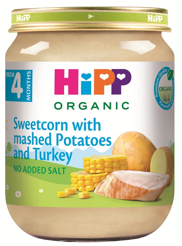 HiPP BIO Pyré bramborové s kukuřicí a krůtím masem 125 g, od uk. 4-6. měsíce značky HiPP - toto zboží pořídíte za výhodnou cenu 39. Nabídku v našem katalogu pro vás připravuje tým odborníků. Dopravné bez jakéhokoliv poplatku se nyní vztahuje na objednávky s minimální hodnotou Kč. Udělejte si radost.