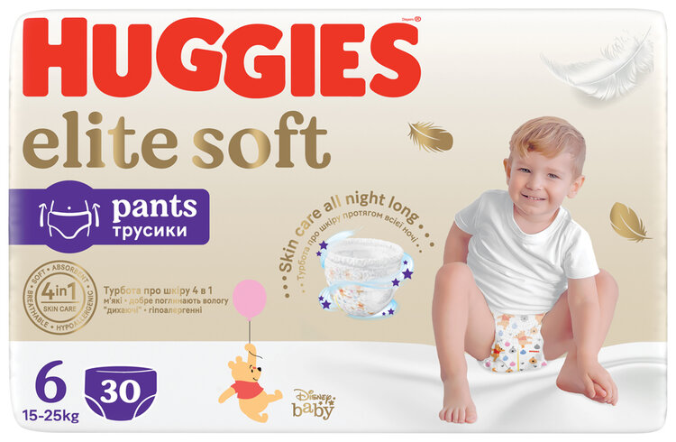 Popis produktu HUGGIES® Kalhotky plenkové jednorázové Elite Soft Pants 6 (15-25 kg), 30 ks